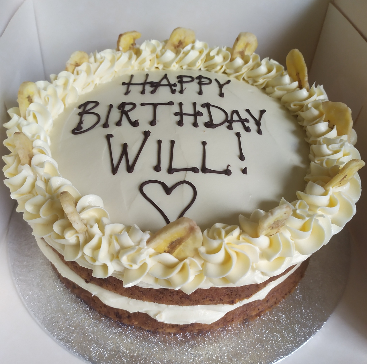 When it comes to vegan banana cake, you might well think of a slightly uninspiring loaf, but this one takes things to a whole new level! Two layers of extremely squidgy banana sponge are sandwiched together with frosting (we favour our peanut butter frosting for the ultimate in delicious combinations), and decorated with crunchy banana chips, creating what could quite possibly become your new favourite cake, and we don't say these things lightly.